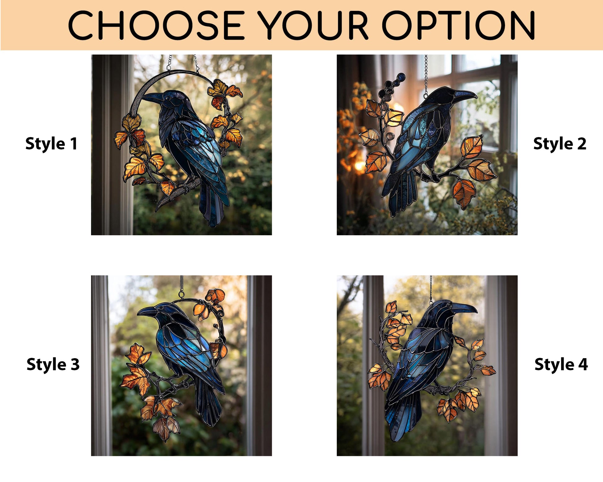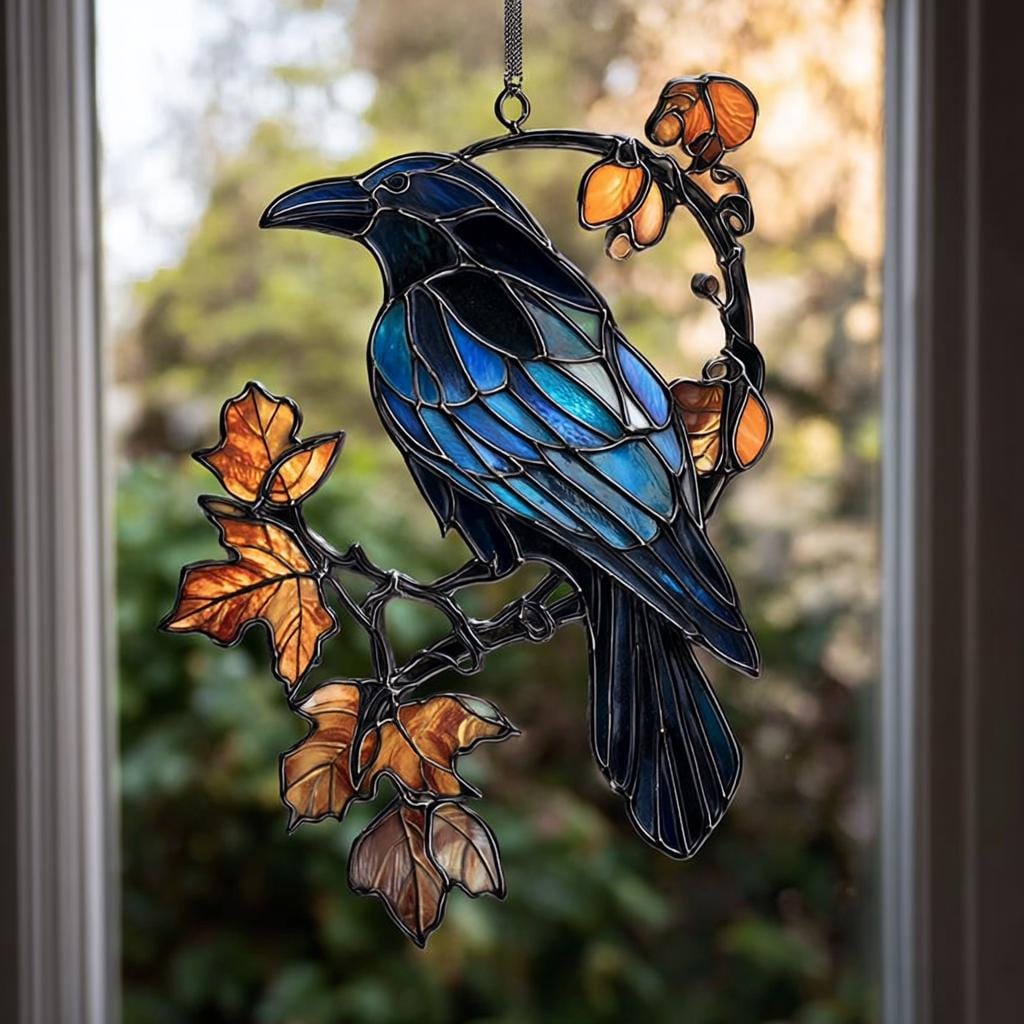 Finished with a decorative hanging chain, it arrives ready to display in your window, garden, or patio. Symbolic of wisdom, transformation, and protection, this suncatcher is an ideal gift for bird lovers, fans of gothic charm, or anyone who appreciates nature-inspired decor.