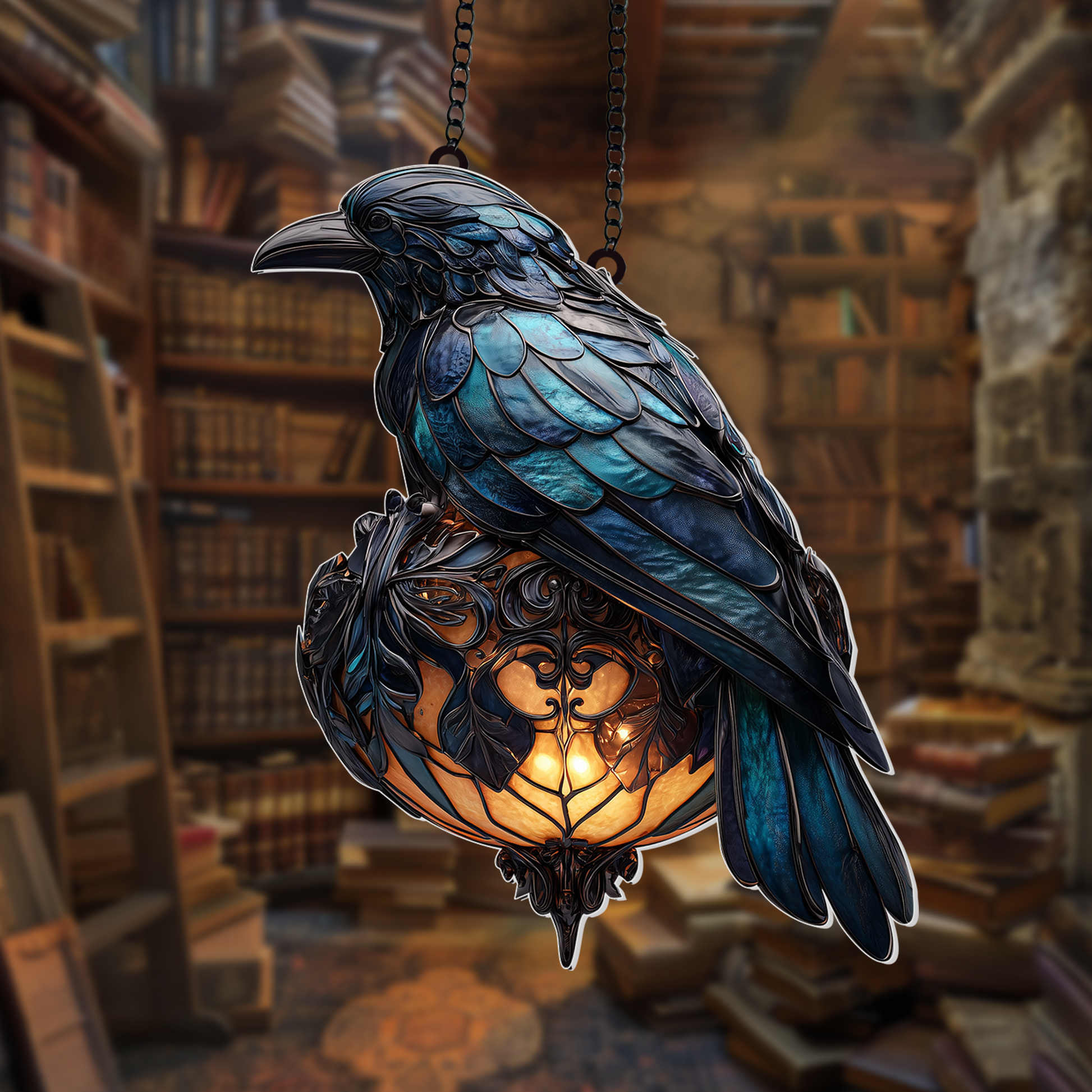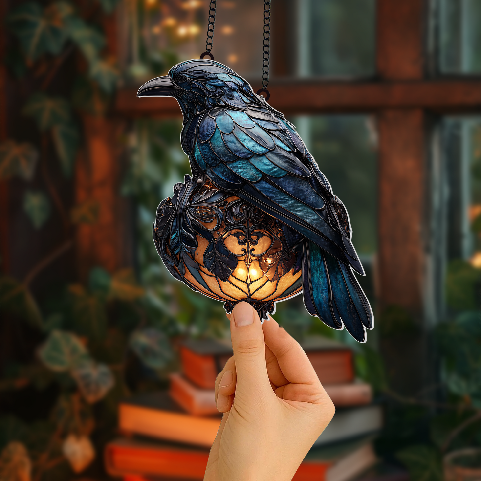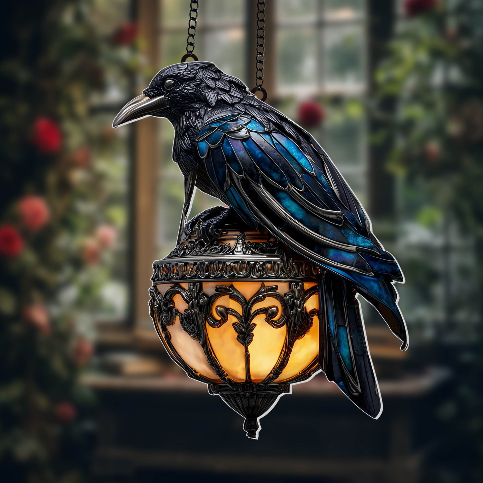 Finished with a decorative hanging chain, it arrives ready to display in your window, garden, or patio. Symbolic of wisdom, transformation, and protection, this suncatcher is an ideal gift for bird lovers, fans of gothic charm, or anyone who appreciates nature-inspired decor.