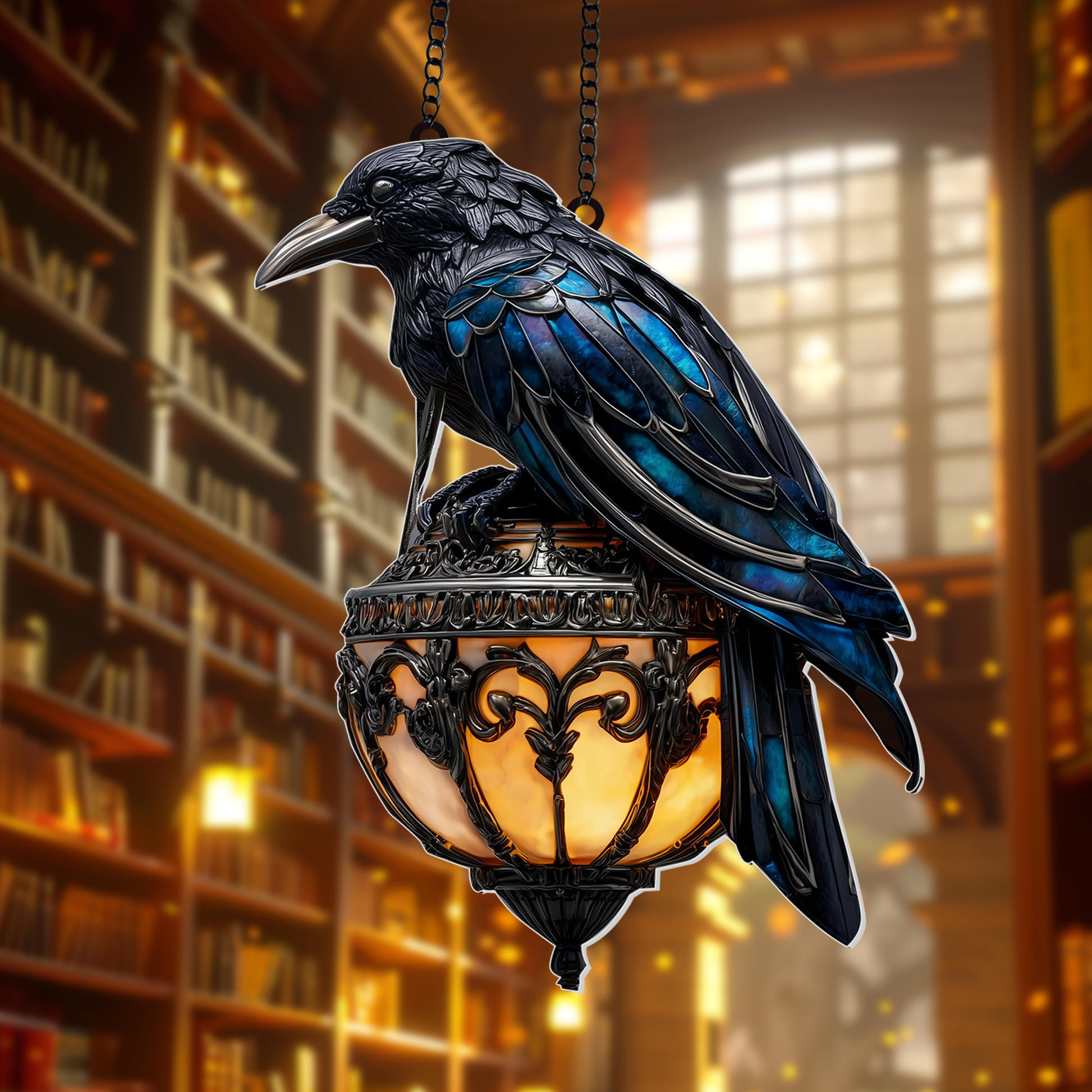 Halloween Raven Lantern Suncatcher, Spooky Gothic Window Hanging, Dark Academia Room Decor