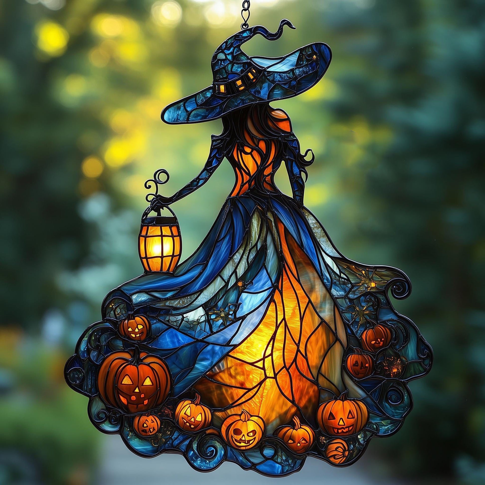 Add a spooky glow to your home with the Halloween Witch Acrylic Window Hanging. Designed with intricate lantern details and festive Halloween colors, this piece captures sunlight and transforms it into enchanting reflections — bringing cozy-spooky vibes to any window or corner.