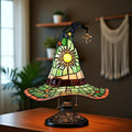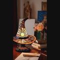 Faux Stained Glass Witch Hat Lamp for Halloween Decoration