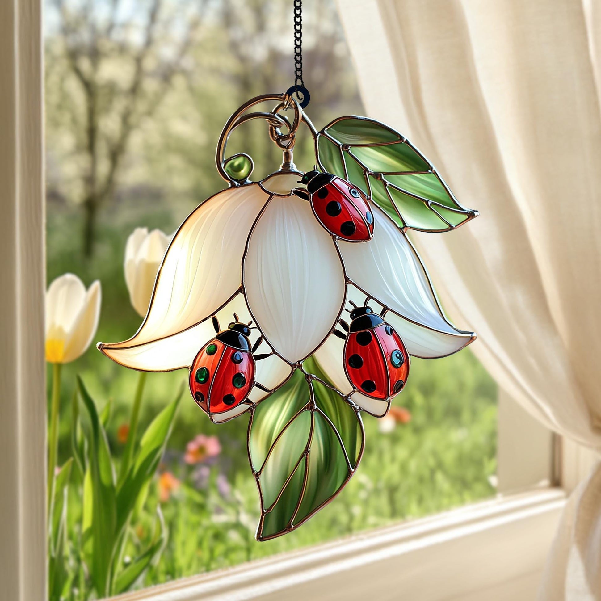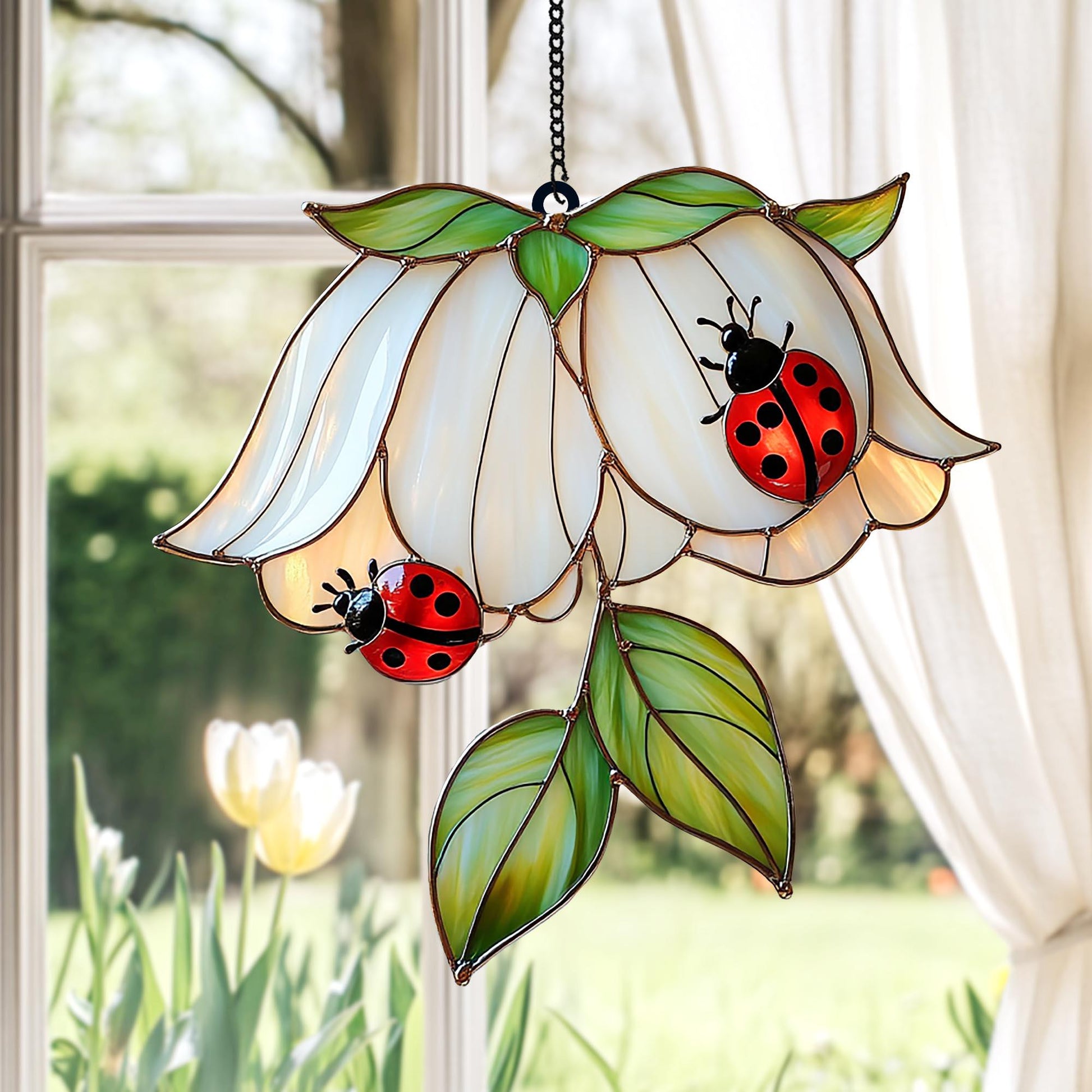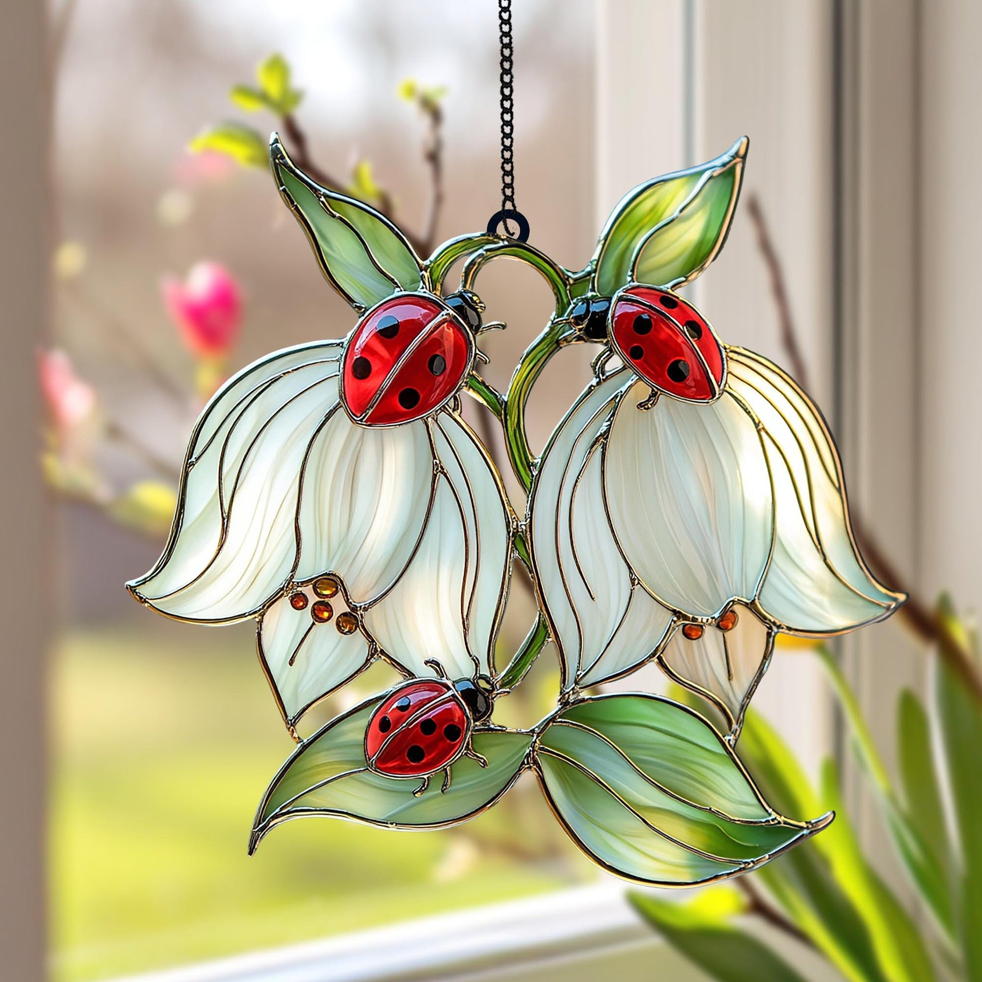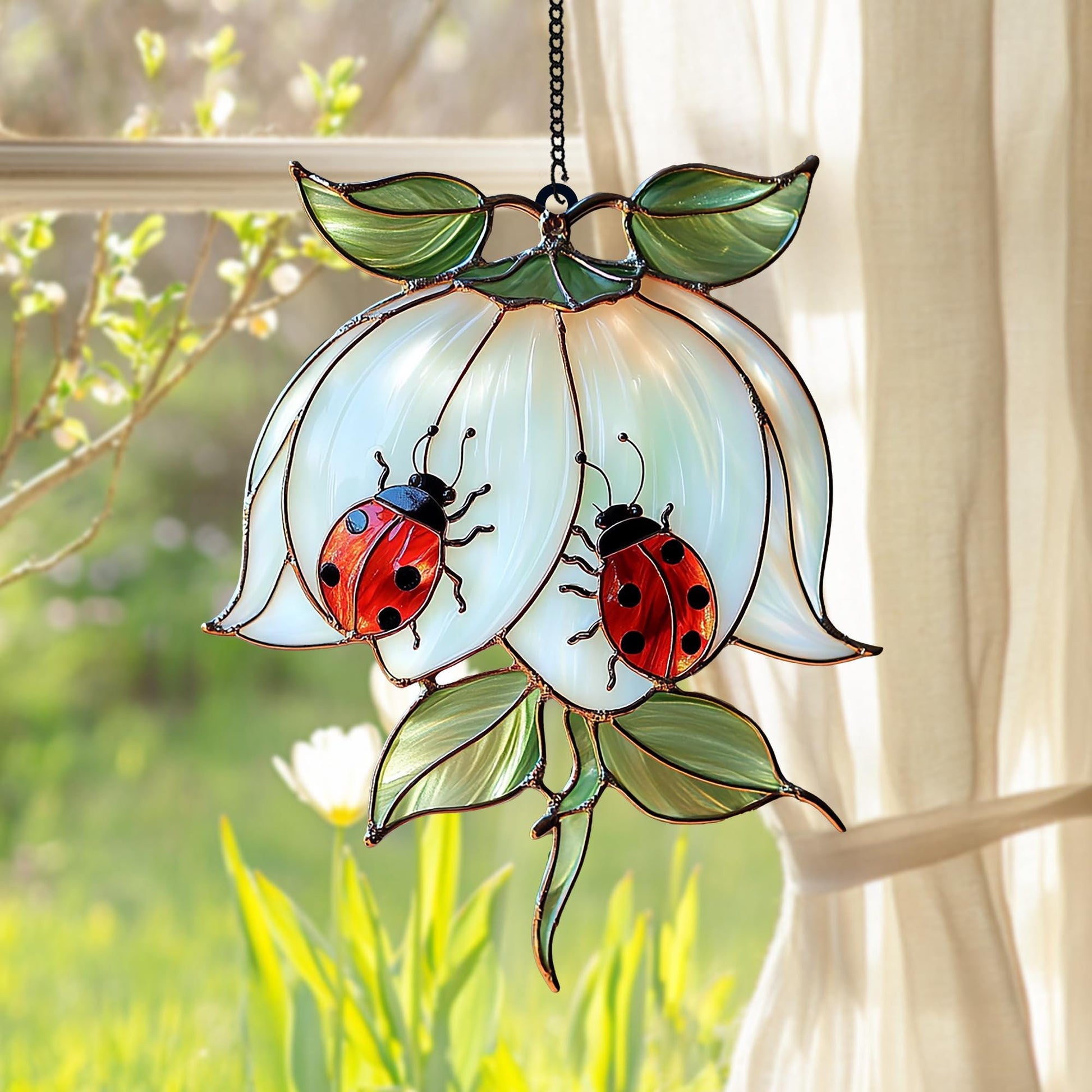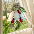 🌿 Stunning Ladybug on White Flower Acrylic Suncatcher